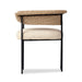 Airy and light with slim, black-finished iron framing and neutral upholstery that lends texture to a beautifully sculpted outdoor dining chair featuring a faux hyacinth and exterior fold detailing. Cover or store indoors during inclement weather and when not in use.