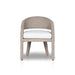 Strike a pose. This popular barrel-back shape with a cutout frame takes its place outdoors. Updated with a woven frame and a seat cushion in 100% olefin, known for its UV-resistant, water-repellent and quick-drying abilities. Cover or store indoors during inclement weather and when not in use.