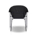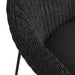 With a curvy silhouette and classic rolled arms, a woven frame brings modern sensibility to this vintage-inspired outdoor dining chair, with an airy iron cradle base for a beautiful balance of scale. Paired with a fully upholstered cushion for a comfortable seat. Cover or store indoors during inclement weather and when not in use.