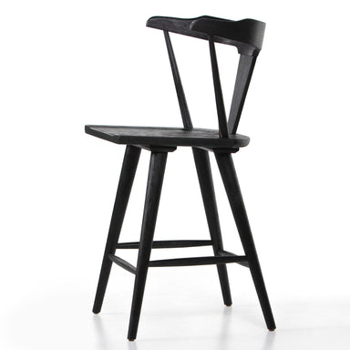 View full detailsBlack Oak:A fresh, counter-height take on mid-century Windsor seating, featuring a bowed, sculptural silhouette and soft black finish to highlight ...