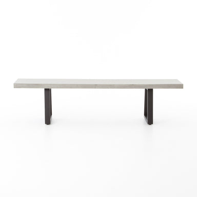 Black:A strikingly simple poly-resin bench derived from river sand is polished to a smooth sheen. Angled, matte black iron legs add architectural a...