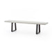 A strikingly simple poly-resin bench derived from river sand is polished to a smooth sheen. Angled, matte black iron legs add architectural appeal to bench-style seating. Great solo or paired with Cyrus Dining Table, indoors or out. Slight color variance is to be expected, and speaks to lava stone's organic nature. Cover or store indoors during inclement weather and when not in use.